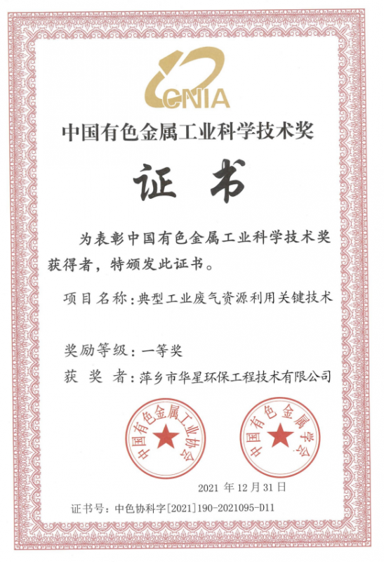 - 中國(guó)有色金屬工業(yè)科學(xué)技術(shù)獎(jiǎng)